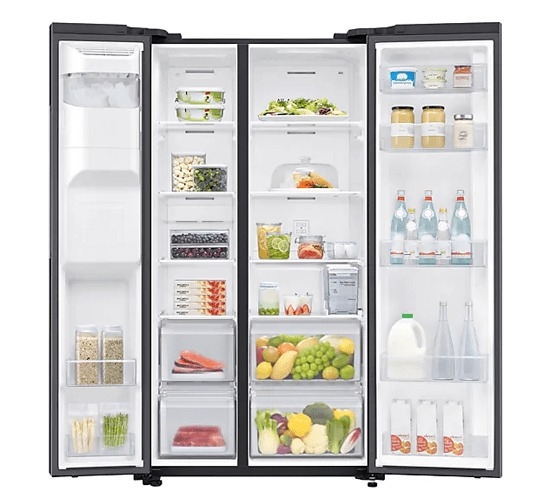 - Chiếc tủ lạnh Samsung Side by Side này có dung tích thực lên đến 617 lít là sự lựa chọn hoàn hảo cho các gia đình có từ 5 thành viên trở lên. Sản phẩm không chỉ đáp ứng nhu cầu lưu trữ mà còn thể hiện sự tiện nghi và đẳng cấp trong không gian sống của bạn.