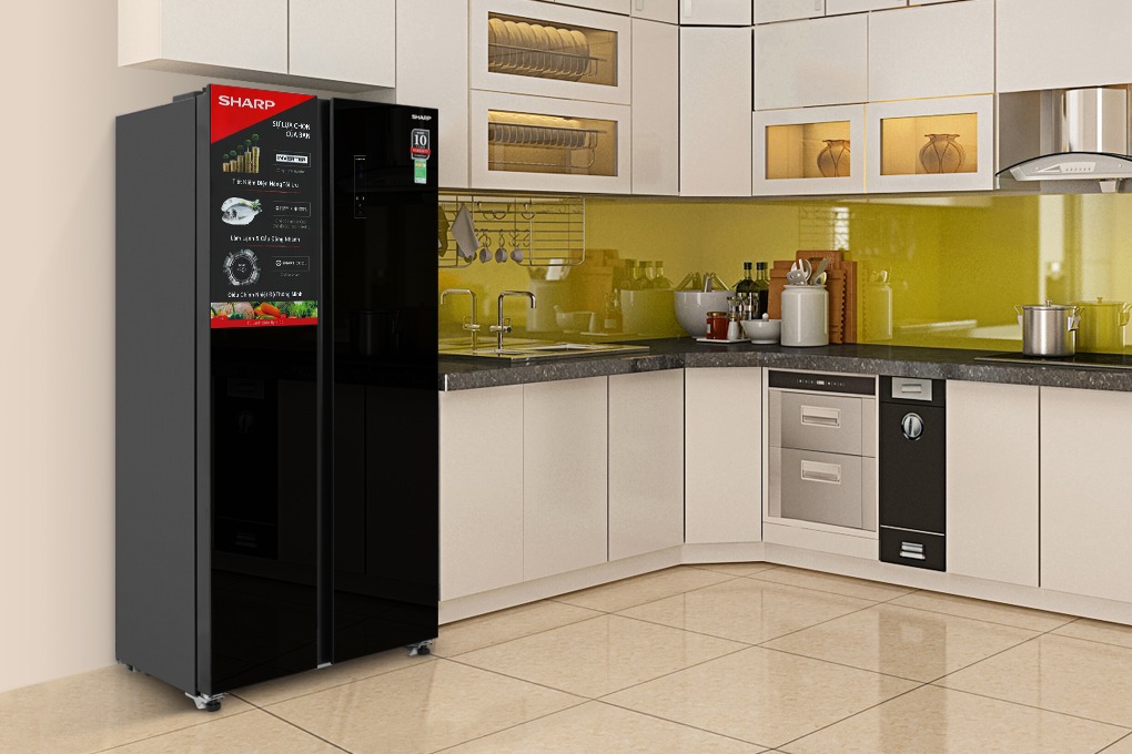 - Tủ lạnh Sharp SJ-SBX530VG-BK có kiểu thiết kế Side by Side, sở hữu gam màu đen với chất liệu cửa tủ bằng kính dễ vệ sinh thường xuyên. Tủ lạnh sẽ góp phần tạo nên vẻ đẹp sang trọng cho gian bếp nhà bạn.