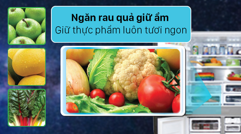 | Công nghệ bảo quản thực phẩm | Ngăn rau Moisture CapsuleNgăn làm lạnh tăng cường -1.5 độ C (Extra cool plus) |