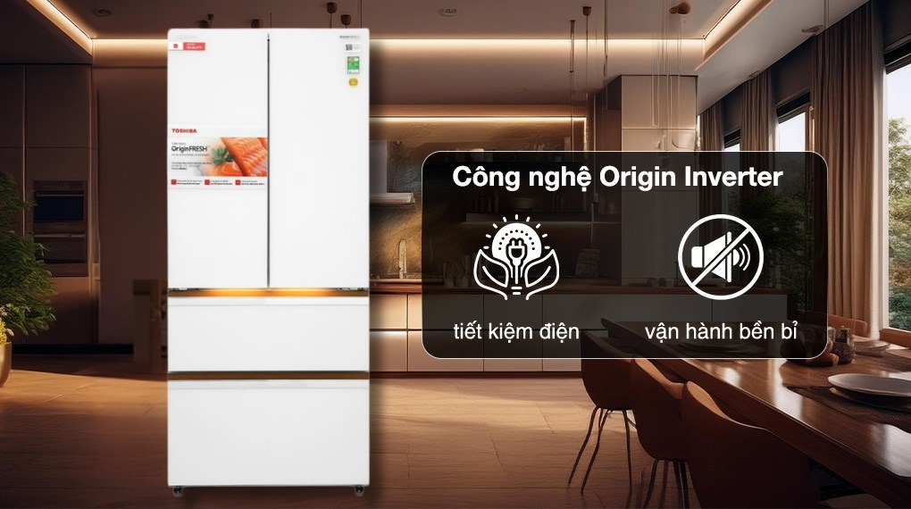 - Công nghệ Origin Inverter: Có khả năng điều khiển máy nén và quạt Inverter phối hợp nhịp nhàng với nhau, vừa mang lại hiệu quả tiết kiệm điện, vừa duy trì được nhiệt độ ổn định bên trong tủ và giảm thiểu tiếng ồn phát ra trong suốt quá trình vận hành.