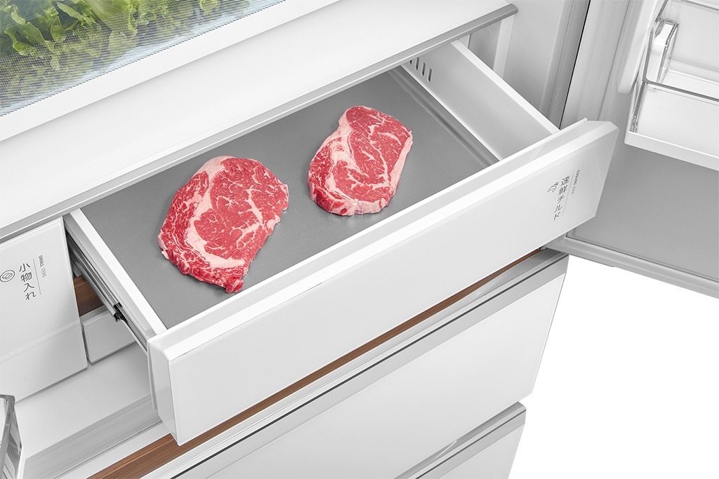 - Ngăn chuyển đổi linh hoạt giữa đông mềm -3°C và Pro Age -1°C giúp giữ trọn vẹn dưỡng chất cho thực phẩm nhờ khay đựng được làm bằng kim loại dẫn nhiệt tốt hơn, người dùng không cần đợi đồ ăn rã đông quá lâu mà có thể sử dụng ngay để nấu.