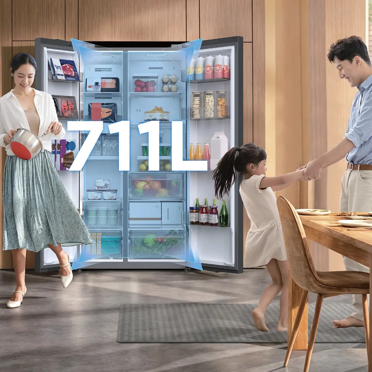 - Dung tích sử dụng 711, phù hợp với những gia đình trên 7 thành viên hoặc những gia đình ít người hơn nhưng có nhu cầu lưu trữ thực phẩm cao. Với dung tích này, gia đình có thể thoải mái sử dụng, lưu trữ thực phẩm trong nhiều ngày liền.