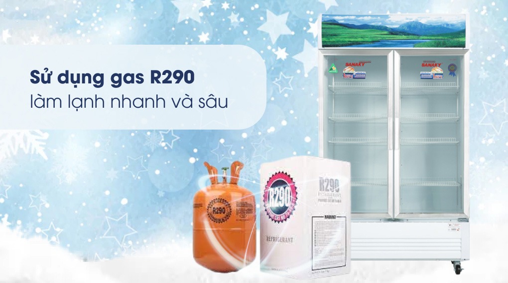 - Trang bị gas R290, loại gas thường được sử dụng trên các tủ mát, tủ đông cao cấp, cho hiệu quả làm lạnh sâu, êm ái, an toàn cho sức khỏe, thân thiện môi trường, đồng thời giúp giảm hao phí điện năng tối ưu cho gia đình.